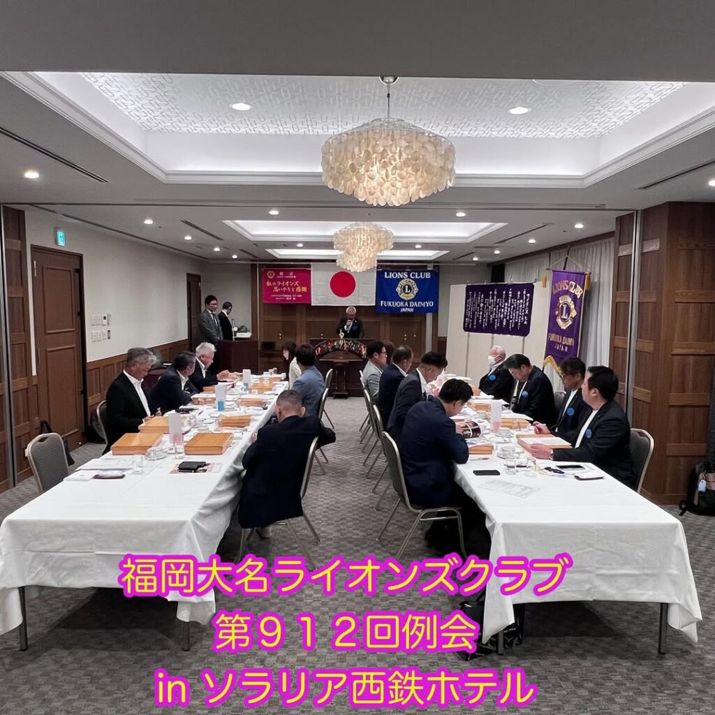 福岡⼤名LC例会2025年9月18日(木)ソラリア西鉄ホテル福岡 福岡大名LC 第910回例会 2025年9月18日、福岡大名ライオンズクラブ第910回例会が、ソラリア西鉄ホテル福岡にて執り行われました。 クラブ退会防止委員任命状の伝達、メンバーシップキー賞の受賞、新会員研修 …続きを読む