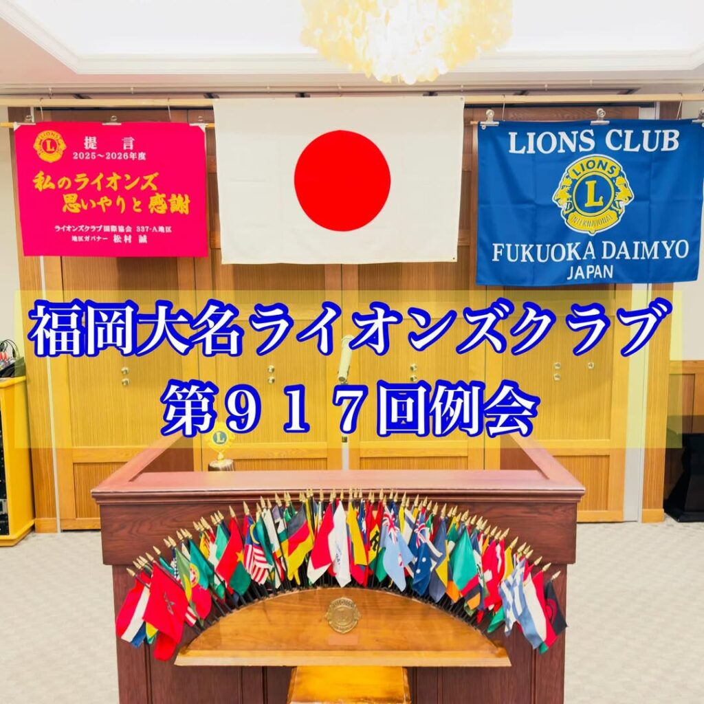 福岡⼤名LC例会2025年12月4日(木)ソラリア西鉄ホテル福岡 福岡大名LC 福岡大名ライオンズクラブ第917回例会 2025年12月4日 福岡大名ライオンズクラブ第917回例会がソラリア西鉄ホテル福岡にて執り行われました 事業記念誌『銀杏の実』作成及び 中洲まつりチャリティの経費報告 40周年記 …続きを読む