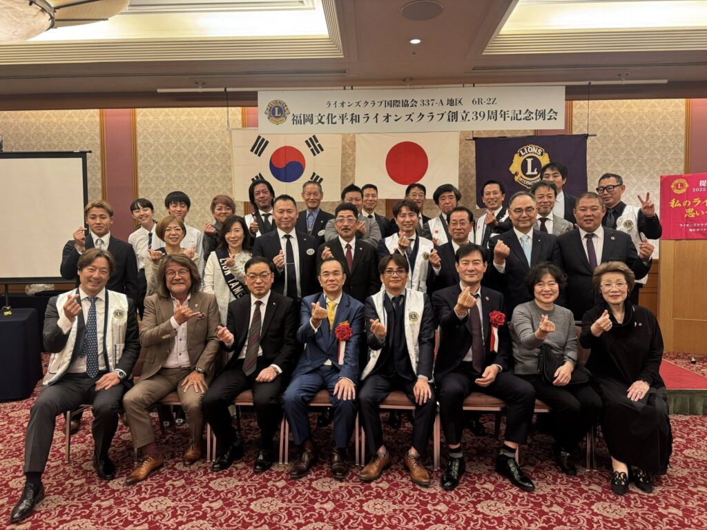 福岡⽂化平和L…例会2025年11月7日(金) 福岡文化平和LC 第39回記念例会 報告 福岡文化平和ライオンズクラブ 第39回記念例会 39年目を迎えた本例会は、若手メンバーが“総力”を挙げて皆様をおもてなし。 当日は多くの皆様にご臨席いただき、温かい雰囲気の中で無事 …続きを読む
