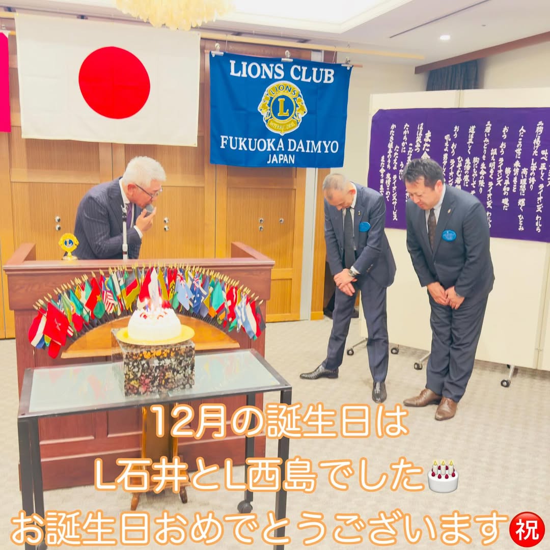 12月度の誕生祝いは前会長のL石井と第二副会長のL西島でした