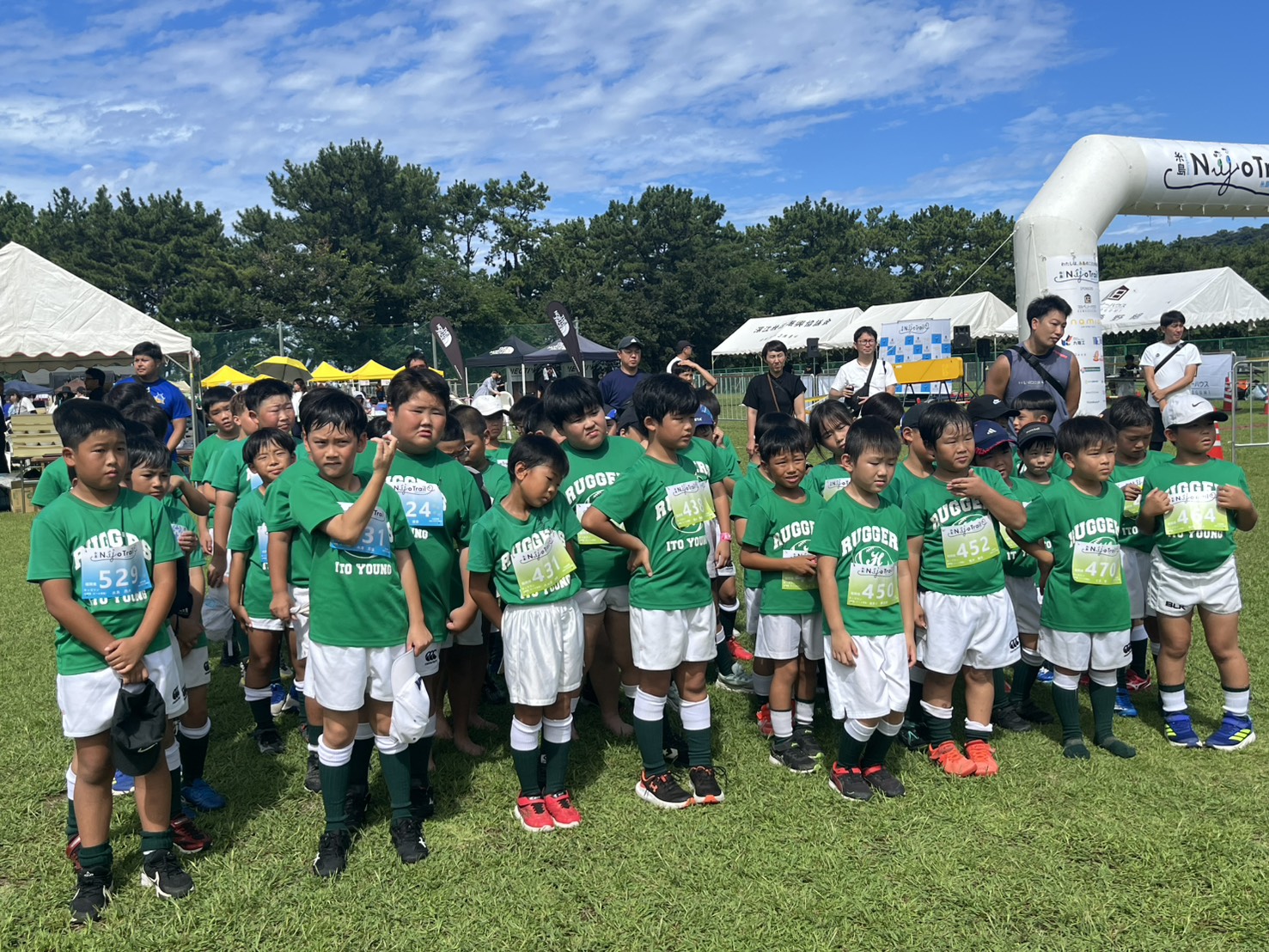 今期の青少年育成事業として、2025年9月28日に開催された糸島二丈トレイルに、伊都ヤングラガーズの小学1年生から4年生まで約50人を招待しました。