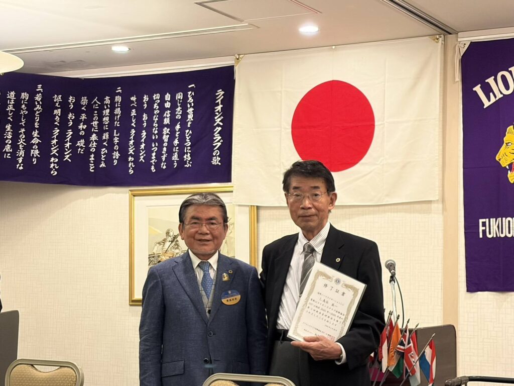 L鳥谷に新会員研修修了書が贈られ、正式にライオンになられました。