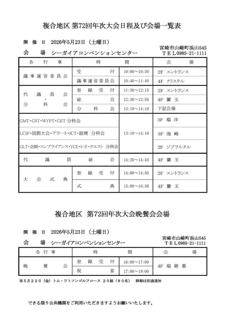 2026年5月23日(土)337複合地区第72回年次大会を開催いたします。